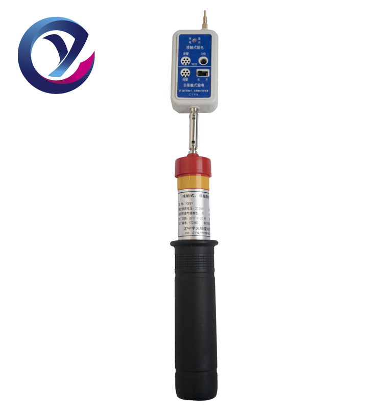 YGSY接触与非接触式组合验电器是我公司的新型专利产品,该产品具有接触式验电与非接触式验电的双重验电方式,并设有独自的供电电池和电路,可保证当一个电路电源不足时,不影响另一电路的正常工作,本产品通过双重验电,提高了验电结果的准确率,也进一步保证了操作者的安全。采用精致黑色PU包装,并能够卡在腰带上,携带方便。验电器头部是可折叠型,不占体积,方便携带。
