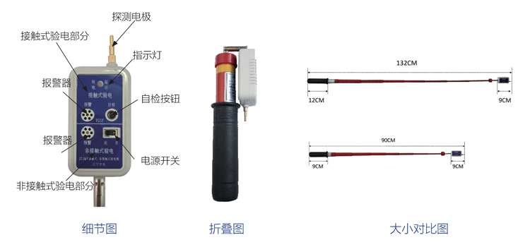 YGSY接触与非接触式组合验电器是我公司的新型专利产品,该产品具有接触式验电与非接触式验电的双重验电方式,并设有独自的供电电池和电路,可保证当一个电路电源不足时,不影响另一电路的正常工作,本产品通过双重验电,提高了验电结果的准确率,也进一步保证了操作者的安全。采用精致黑色PU包装,并能够卡在腰带上,携带方便。验电器头部是可折叠型,不占体积,方便携带。