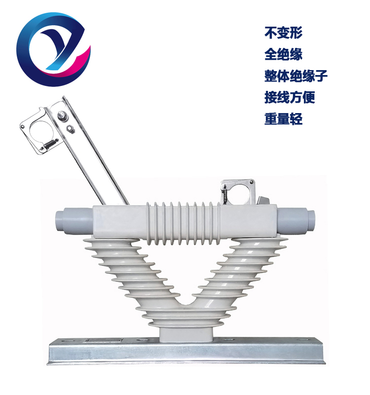 绝缘子采用了电气化铁路使用的27kV高压的绝缘材料,具有优良力学性能、电性能和耐化学腐蚀性能,代替传统的瓷绝缘子及用硅胶做伞裙的绝缘子,具有良好的防爆性能和极强的耐污能力。爬电比距可满足Ⅳ级污秽等级要求。DGW9V-12型户外交流高压隔离开关将传统隔离开关的二个立柱形绝缘子改为一个V形绝缘子,此V形绝缘子由我公司自行设计,国内首创,其优点是:不会因为安装时因用力不当或户外长期使用造成安装板变形,以及线路电缆横向拉力导致的导电板与接线板接触不良,从而造成电力事故。该产品具有体积小、重量轻、不易破损、安装方便、使用寿命长的特点。