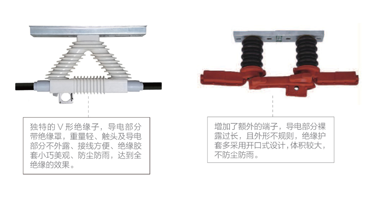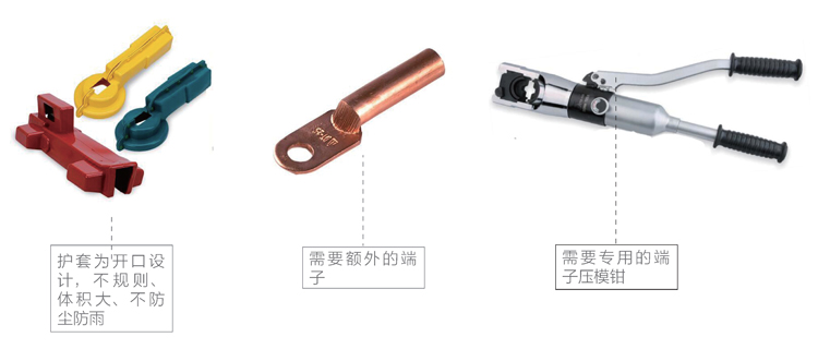 相比常规产品的接线方式,省去了安装螺栓、铜铝管端子或铜端子,不需要专用的压模钳压器,即减少了成本,又节约了施工时间,绝缘护套也更美观、防尘防雨、绝缘效果更好。